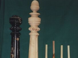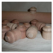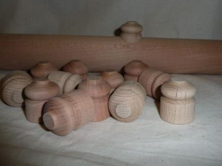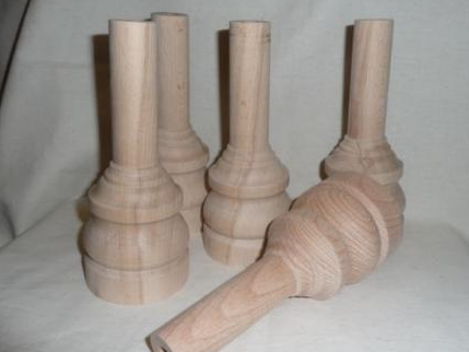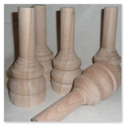 Die Fertigung erfolgt nach geliefertem Muster oder Auswahl aus unserem Katalog. Dabei können Sie Ihre Holzart selbst wählen, ebenso wie Länge oder auch Durchmesser des Zapfens. Auf Wunsch liefern wir mit fertiger Oberfläche. Gewöhnlich ist das einkomponentiger seidenmatter Klarlack (lösemittelhaltig, formaldehydfrei). Möglich ist auch ein widerstandsfähigerer Zweikomponentenlack oder eine deckfarbige Behandlung der Drehteile.